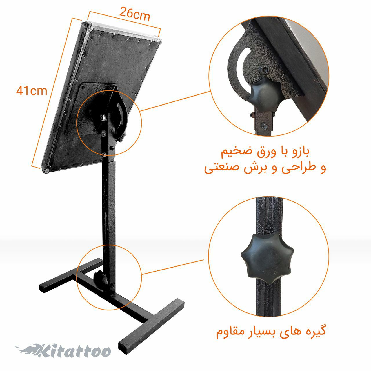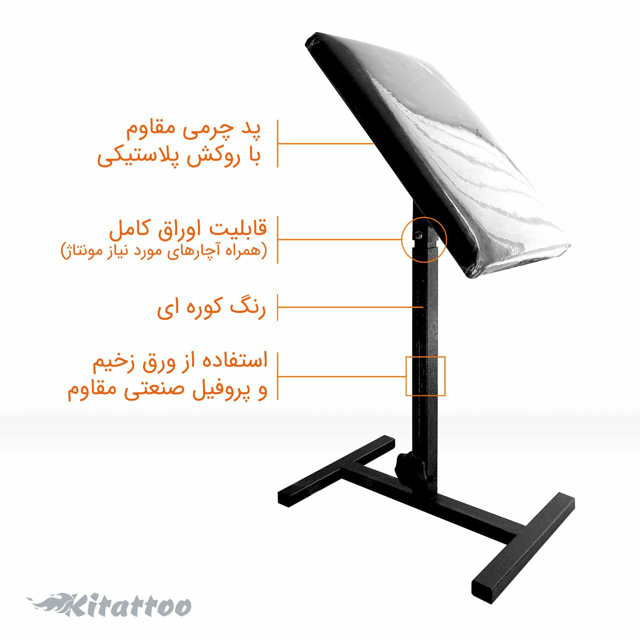 آرم رست طرحدار یا میز تاتو در هنگام تاتو زدن زیر دست مشتری قرار می گیرد و از تکان خوردن دست او جلوگیری می کند. شما می توانید ارتفاع و زاویه آرم رست را تنظیم کنید و به راحتی از آن استفاده کنید.