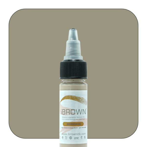 رنگ تاتو دیراسکین آی براون Deerskin ibrown بژ روشن است و برای ترکیب و حجیم سازی های لب و هایلایت ابرو از آن استفاده می شود. این رنگ قدرت پوشانندگی بالایی دارد و بدون ریزش است و برای پرتره و کاور تاتوهای قدیمی از آن استفاده می شود.