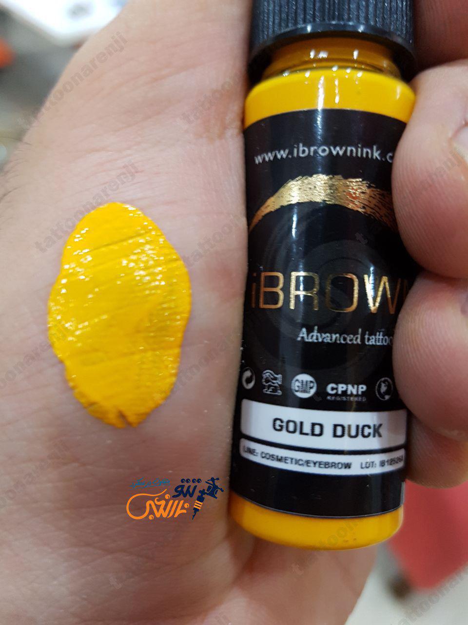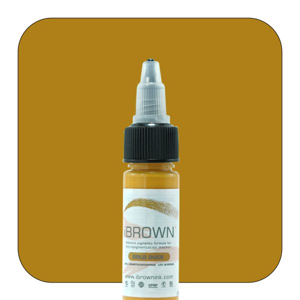 رنگ تاتو گلد داک آی براون Gold Duck ibrown زرد خالص است و برای دکوپاژ ابروهای بنفش یا بادمجانی مناسب می باشد. این رنگ همچنین برای ترکیب در طیف رنگ های قهوه ای و رنگ هایی که پیگمنت بنفش دارند، استفاده می شود. رنگ تاتو گلد داک آی براون در دسته رنگ های خنثی کننده یا دکوپاژها قرار می گیرد.