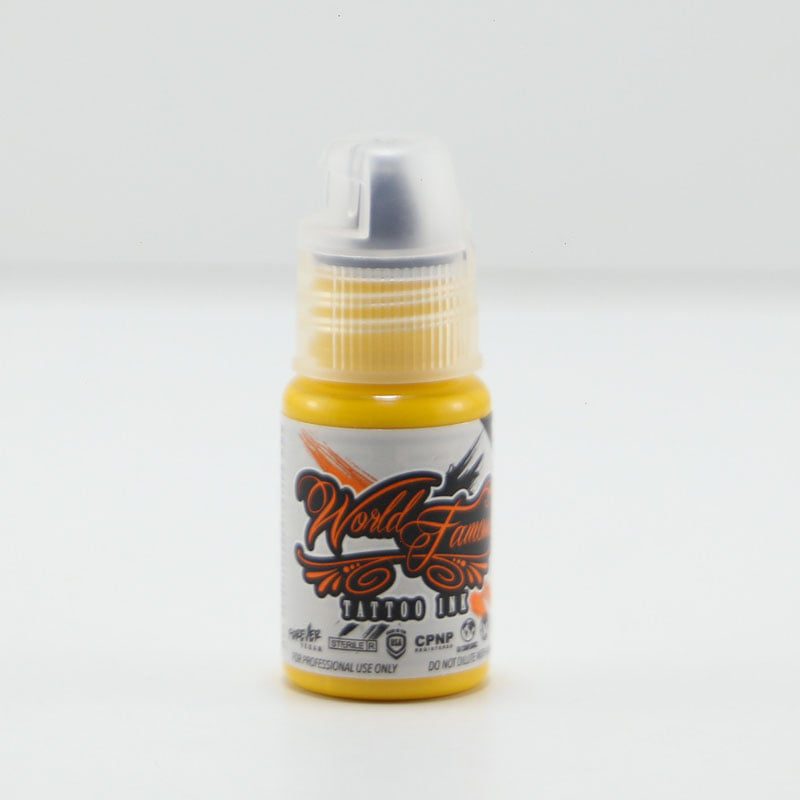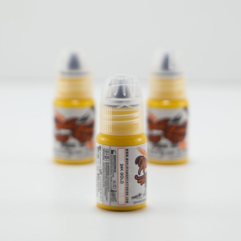 رنگ تاتو طلایی 24 عیار فیمس 24k gold زرد طلایی و 15 میل است و از برند وردفیمس یکی از برترین و بهترین برندهای تاتو دنیا می باشد. این رنگ پایه آب است و برای تاتو صورت و بدن مناسب می باشد. این رنگ در دسته رنگ های خنثی کننده یا دکوپاژ ها قرار می گیرد. شما می توانید از این رنگ در دکوپاژ ابروهایی که تناژ بنفش دارند، استفاده کنید.