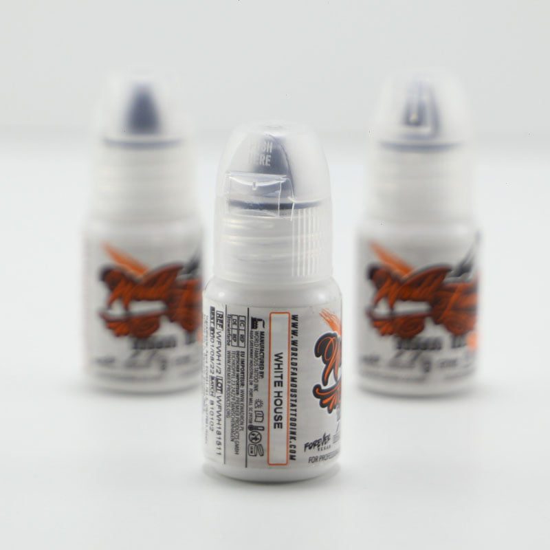 رنگ تاتو سفید فیمس 15 میل پلمپ White House مناسب كاور اطراف لب در تكنيک تريدی كالر و تركيب در ملانين سازی ها می باشد. مطمئنا خیلی از دوستان مشکل پیدا کردن رنگ سفید خیلی خوب را دارند که با استفاده از این برند این مشکل تا حد زیادی رفع خواهد شد. رنگ تاتو سفید فیمس 15 میل پلمپ برای تاتو بدن مناسب است و یکی از قوی ترین رنگ های سفید موجود در بازار می باشد.