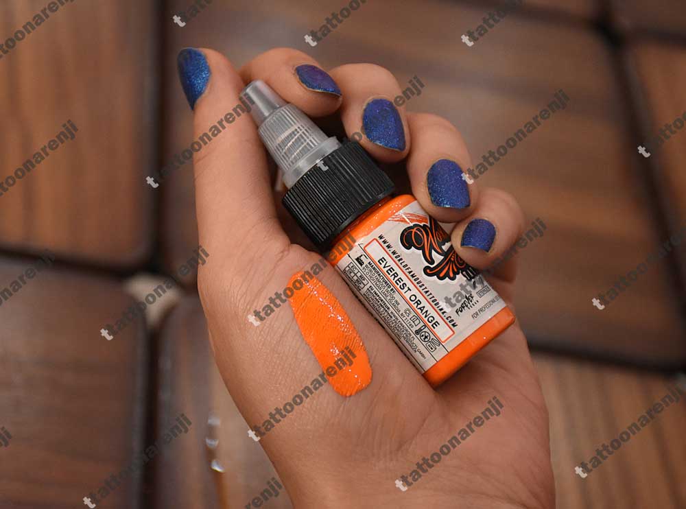 رنگ تاتو اورست اورنج فیمس میلی Everest Orange نارنجی و دارای تناژ گرم است. این رنگ برای دکوپاژ ابروهای سیاه، دودی و خاکستری مناسب است. رنگ تاتو اورست اورنج فیمس میلی پایه آب دارد و برای تاتو بدن، تاتو ابرو و تاتو آبرنگی استفاده می شود. این رنگ تاتو اصل در حجم 15 میل و 30 میل عرضه می شود و محصولی از کشور کانادا است.