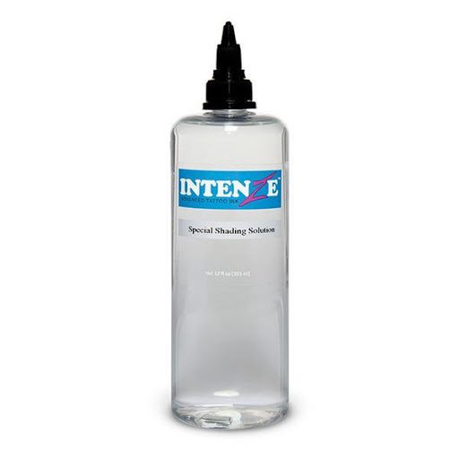 بعضی از تاتو آرتیست ها برای رقیق کردن رنگ به جای شیدینگ سولوشن اینتنز میلی، از آب مقطر استفاده می کنند که این کار باعث کاهش چشمگیر کیفیت رنگ تاتو بر روی پوست می شود و باعث می شود رنگ به طور کامل ترکیب نشود و روی پوست ناهمگون شود. مواد تشکیل دهنده این رقیق کننده رنگ تاتو گلیسیرین، نارون کوهی (witch hazel) و آب مقطر است.